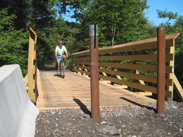 New Bethlehem trailhead: MP20.2 From the interchange of PA28 and US422, go east on US422/PA28 for 4 miles and take the PA28/PA66 exit. Go 18.6 miles to Lafayette St in New Bethlehem, turn left/north at the stoplight. Go two blocks to Arch St and turn right/east. Go half a block to the municipal parking lot. The trail is on the left side of Arch St. There is some parking alongside the trail and there is parking in the metered lot with a sign that says “free parking”.